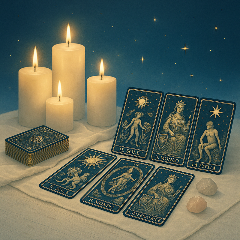 Durante il consulto, i Tarocchi diventano una bussola: mostrano cosa accade nel presente, quali energie ti circondano, quali ostacoli si frappongono e quali opportunità puoi cogliere. Le carte raccontano il “perché” delle situazioni che vivi e ti svelano come muoverti in modo concreto.